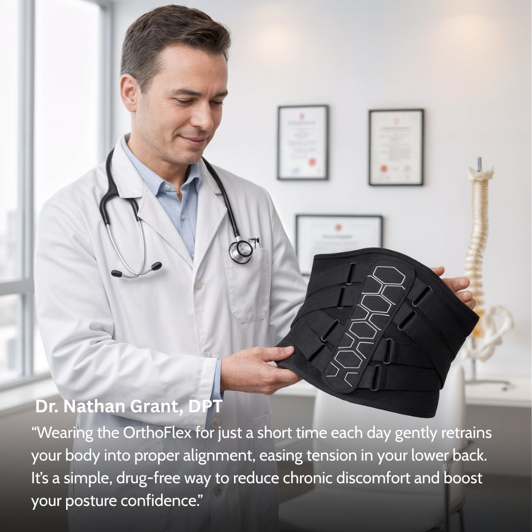 OrthoFlex is trusted by Dr. Lucas Bennett a Doctor of Physical Therapy with years of experience helping patients improve posture, relieve back pain, and regain mobility.