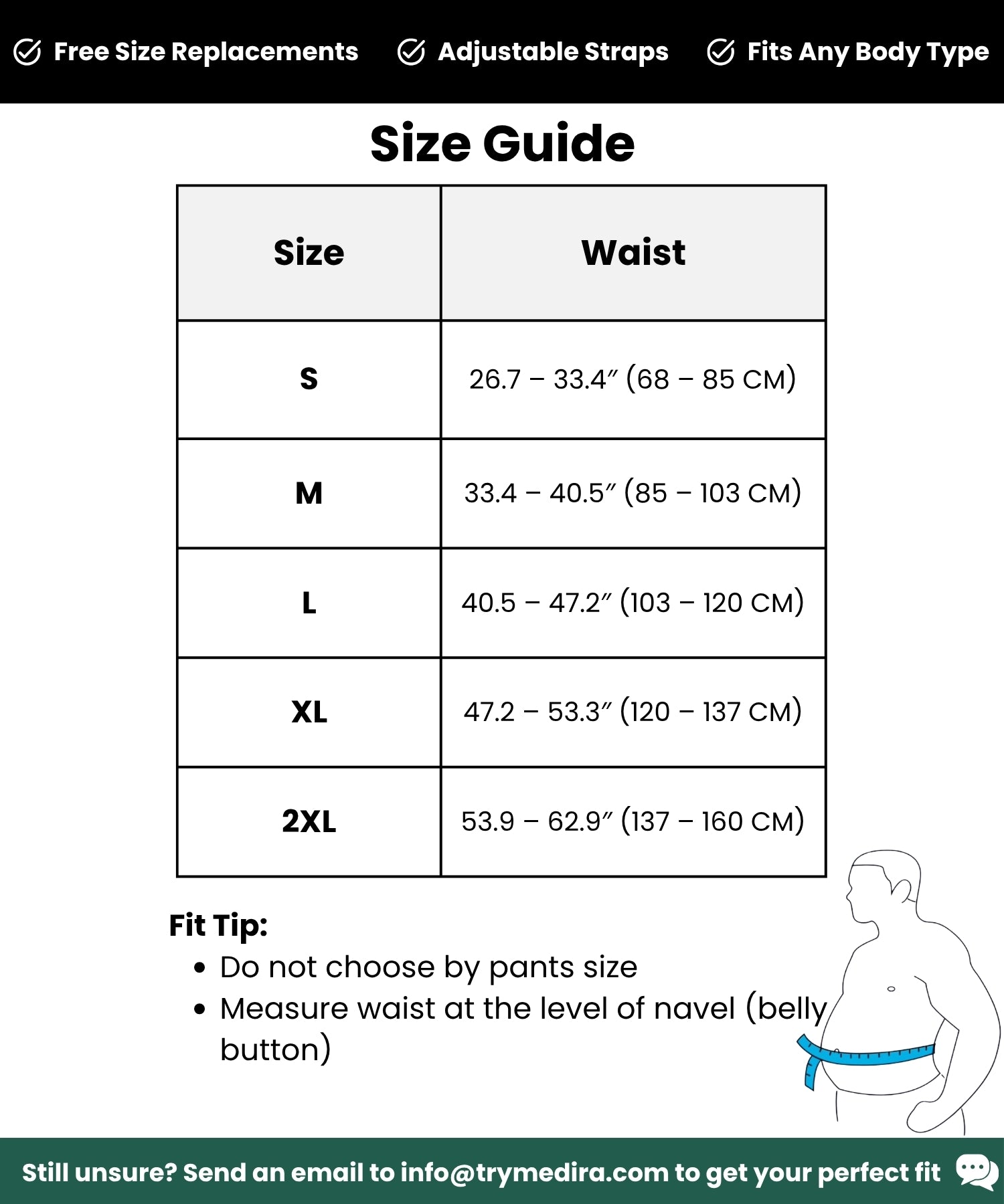No worries — we offer free size replacements. Just check our size chart, and if it doesn’t fit quite right, we’ll get you the perfect one.